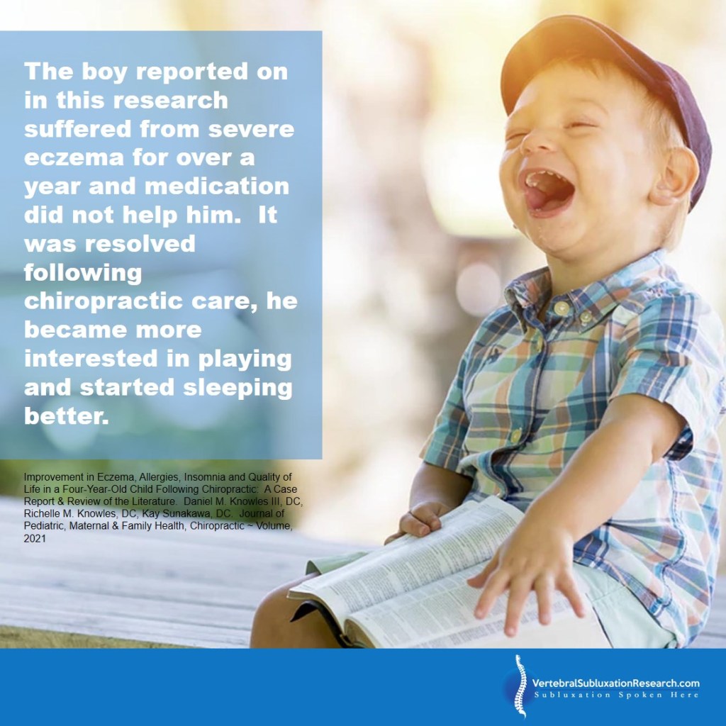 Following chiropractic adjustments, his symptoms improved, his eczema cleared and his flare up episodes were less frequent and less severe. He became more interested in playing and began sleeping better.